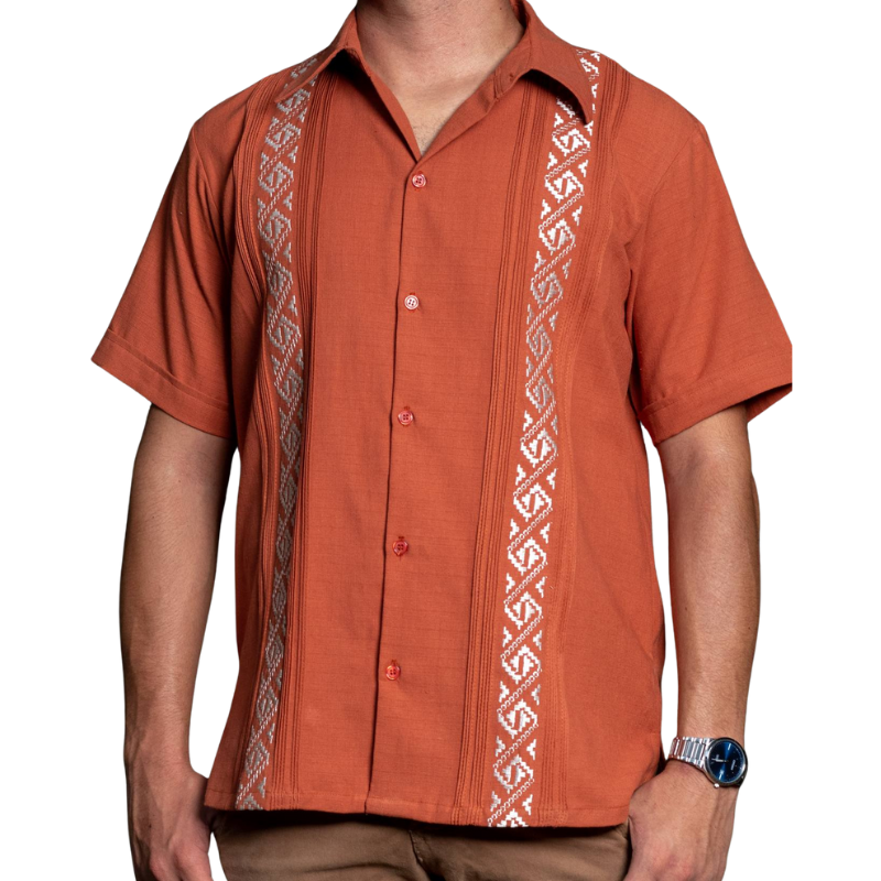 Confeccionada con telas de primera calidad, nuestra guayabera color ladrillo bordada ofrece una comodidad excepcional durante todo el día. Su tejido transpirable proporciona una sensación fresca, permitiéndote mostrar tu estilo con total libertad.
